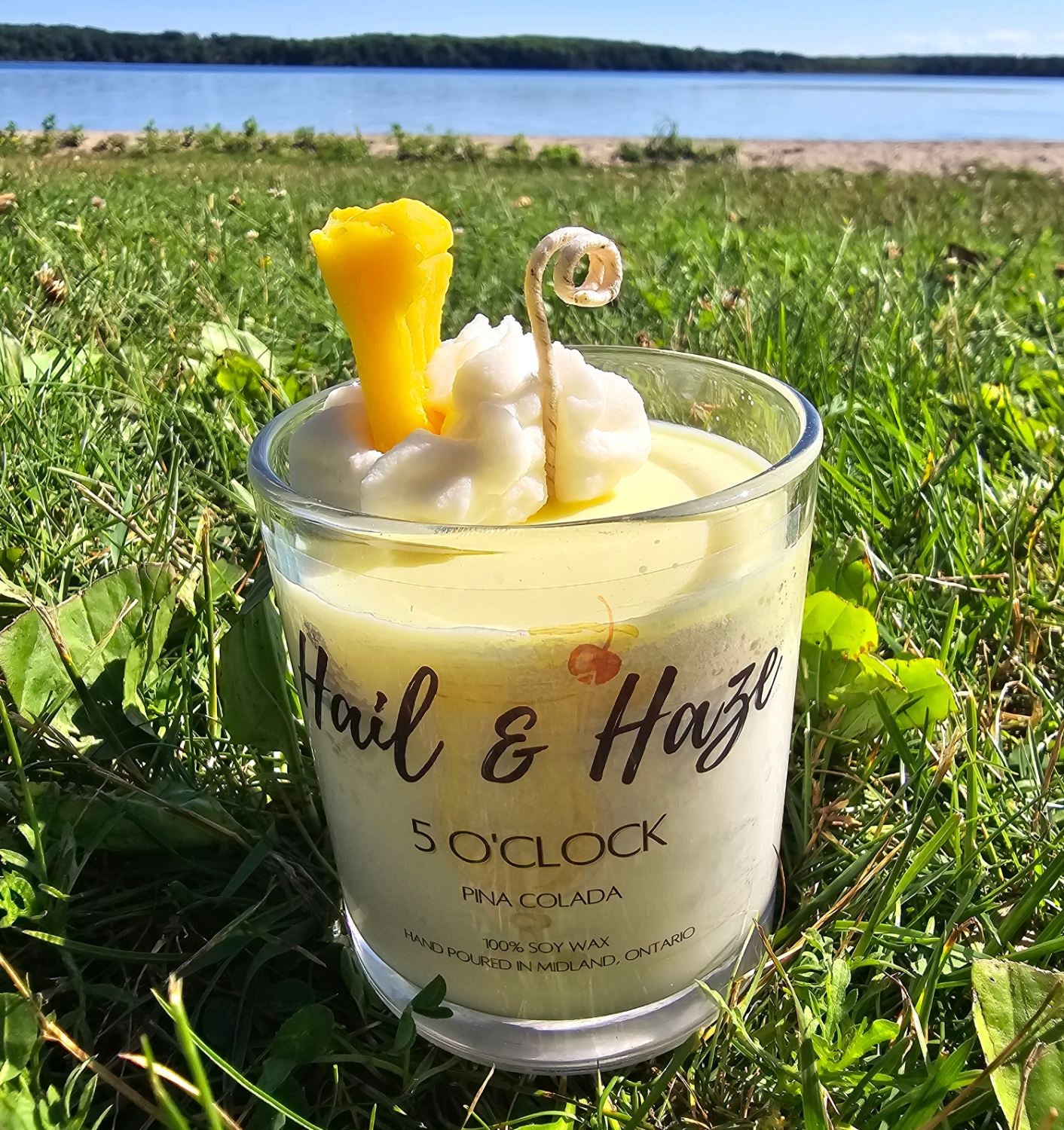 Indulge in the captivating aroma of the 5 o'clock candle, and let its Pina Colada scent transport you to a tranquil oasis, no matter the time of day. Whether you're yearning for a getaway or simply craving the delightful fragrance of this iconic cocktail, the 5 o'clock candle will whisk you away to a tropical paradise with its enchanting scent.